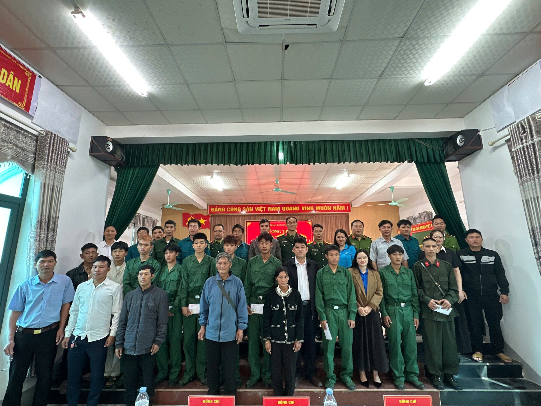 Tham dự buổi gặp mặt có các đồng chí đại diện lãnh đạo Đảng ủy, HĐND, UBND, UBMTTQ Việt Nam xã; đại diện các ban, ngành, đoàn thể; thành viên Hội đồng Nghĩa vụ quân sự xã; cùng gia đình và các thanh niên ưu tú chuẩn bị lên đường làm nhiệm vụ bảo vệ Tổ quốc.