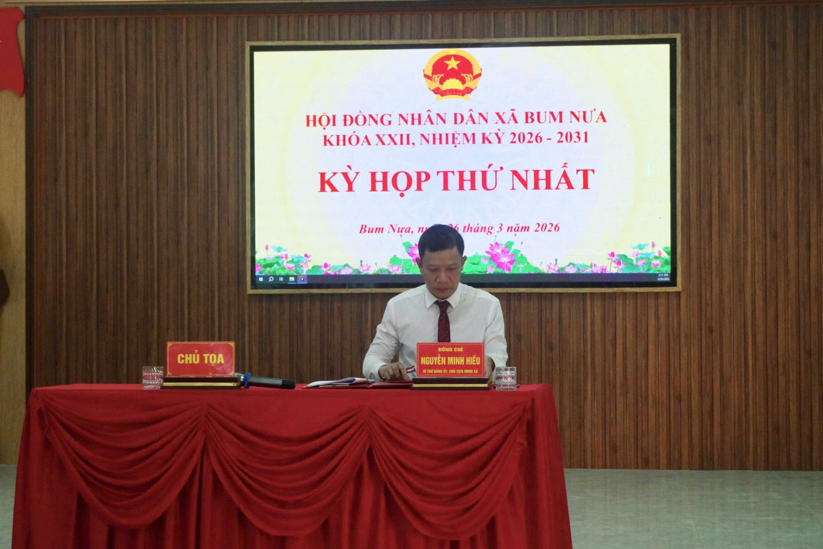Chiều ngày 26/03/2026, Hội đồng nhân dân xã Bum Nưa khóa XXII, nhiệm kỳ 2026–2031 đã long trọng tổ chức Kỳ họp thứ nhất nhằm kiện toàn bộ máy tổ chức và quyết định những nội dung quan trọng theo quy định của pháp luật. Đồng chí Nguyễn Minh Hiếu - Bí thư Đảng ủy, Chủ tịch HĐND xã khóa XXI chủ trì kỳ họp.