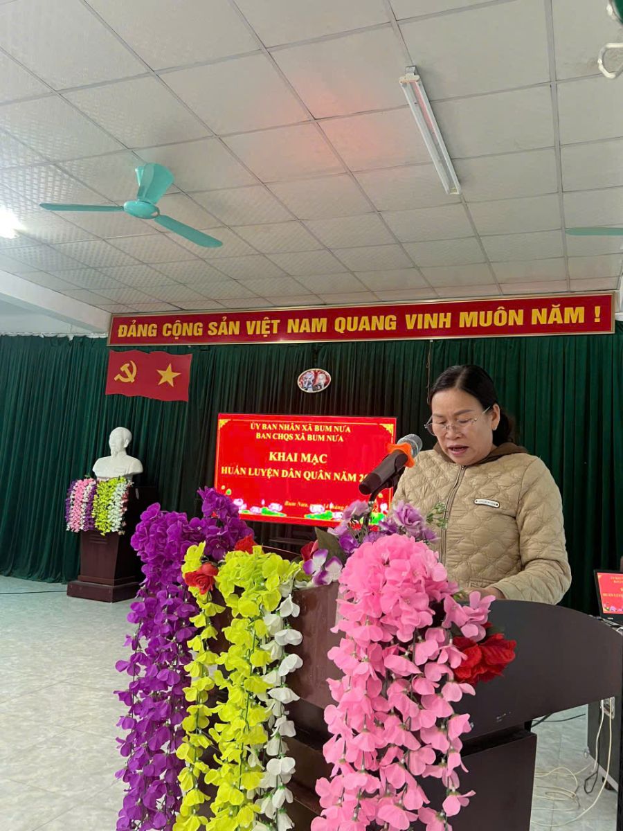 Ảnh: Đồng chí Vàng Thị Thánh - CT UBND xã - khai mạc huấn luyện