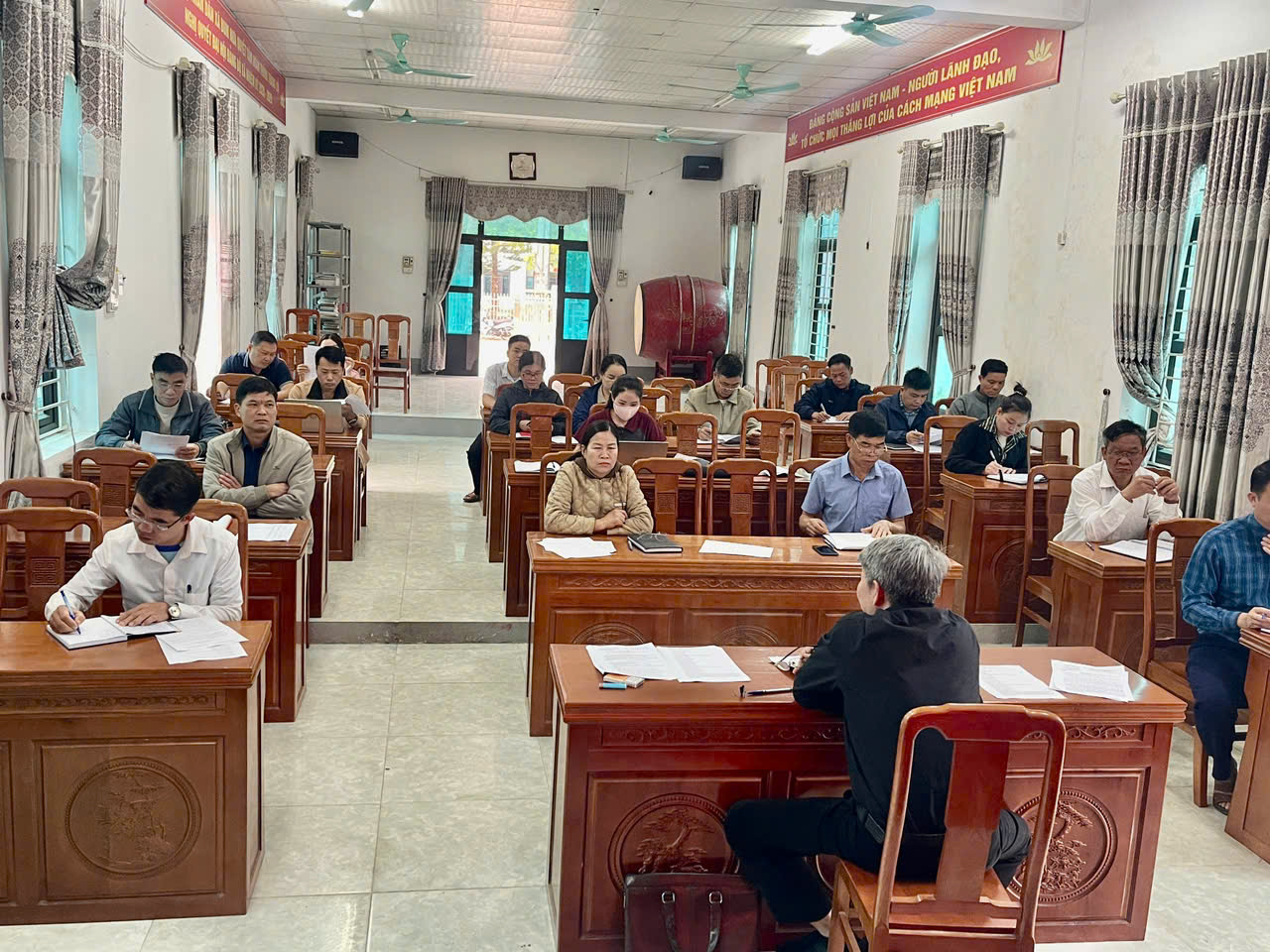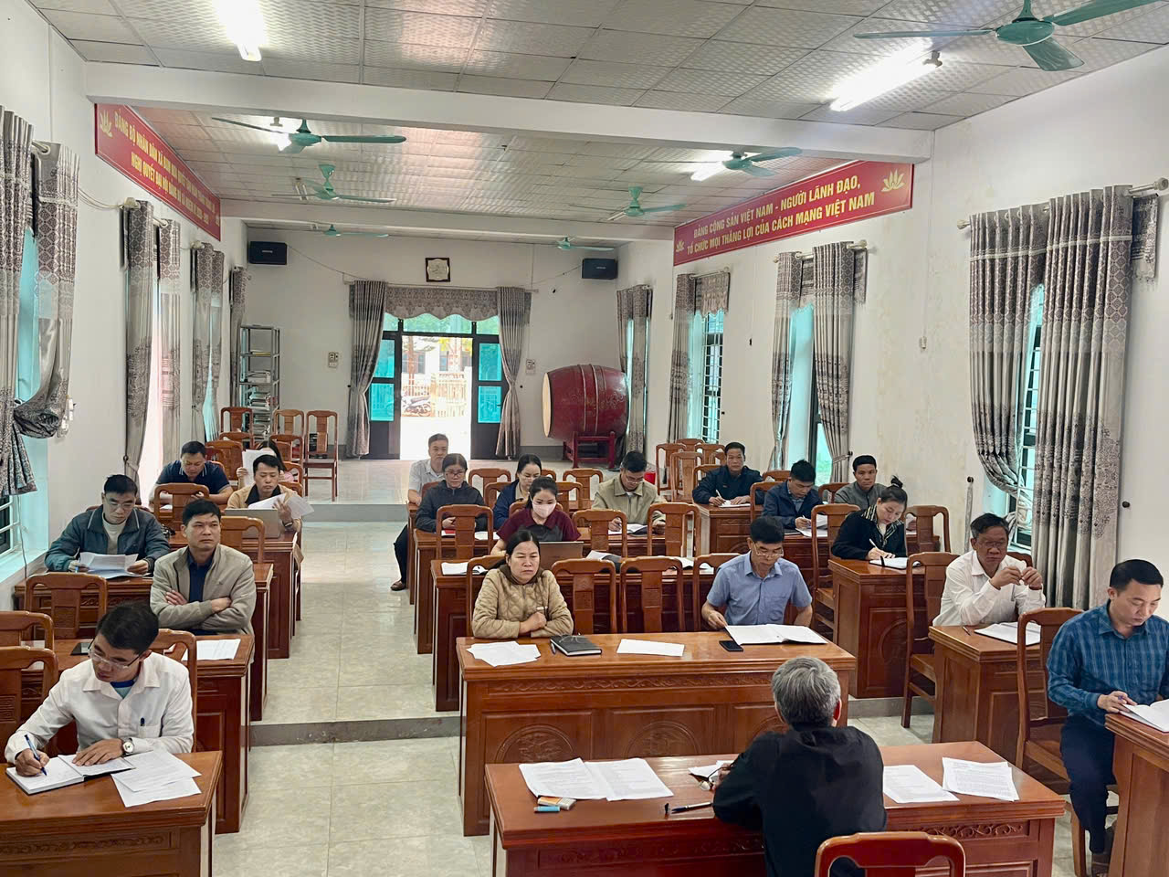 Ảnh: Phiên họp dự đầy đủ các thành viên Ban chỉ đạo triển khai xóa nhà tạm, nhà dột nát trên địa bàn xã