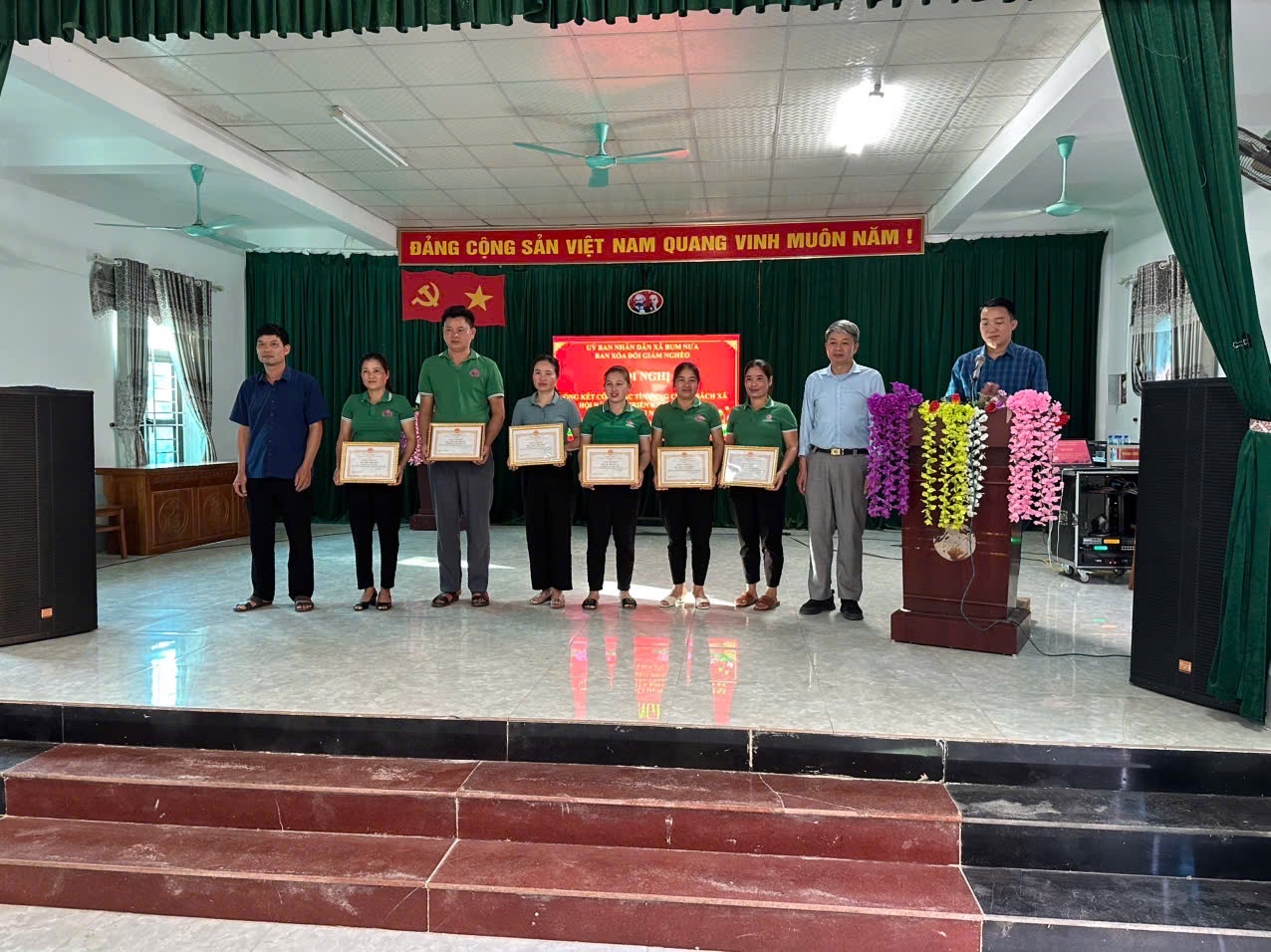 Ảnh: Đồng chí Trần Văn Tâm - Bí thư đảng uỷ và đồng chí Pờ Văn Hoàn - phó chủ tịch HĐND tặng giấy khen cho các chi hội có thành tích xuất s