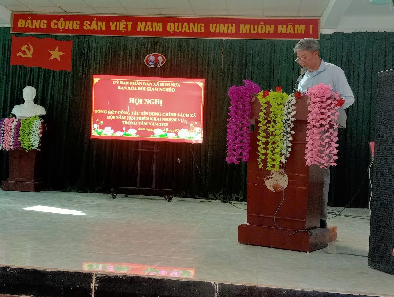 Chiều ngày 28/2/2025 UBND xã Bum Nưa tổ chức Hội nghị Tổng kết công tác tín dụng chính sách xã hội năm 2024 triển khai nhiệm vụ trọng tâm năm 2025.