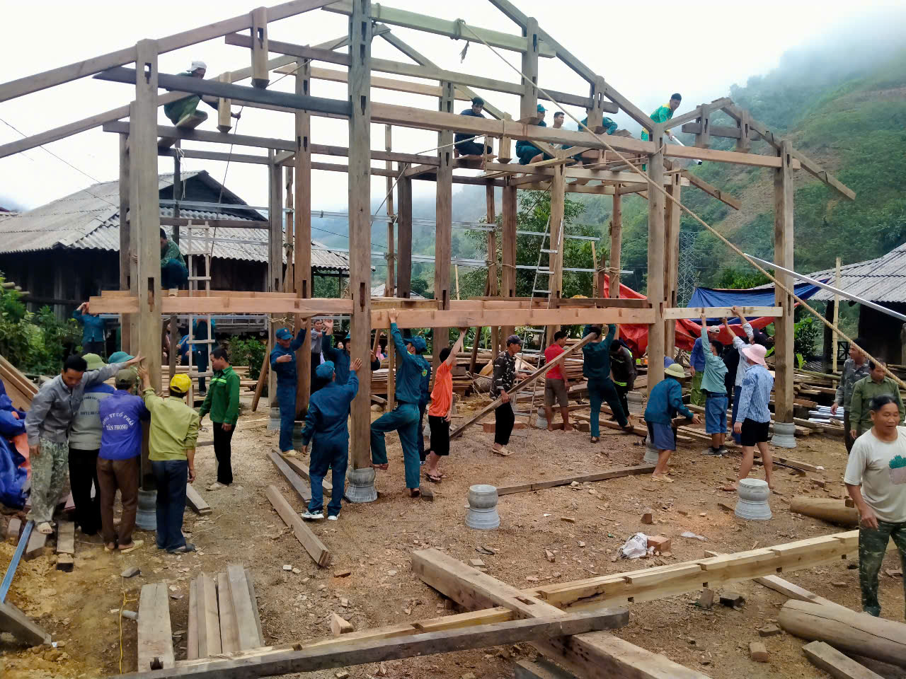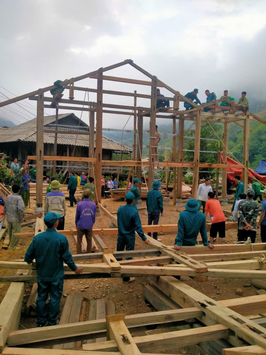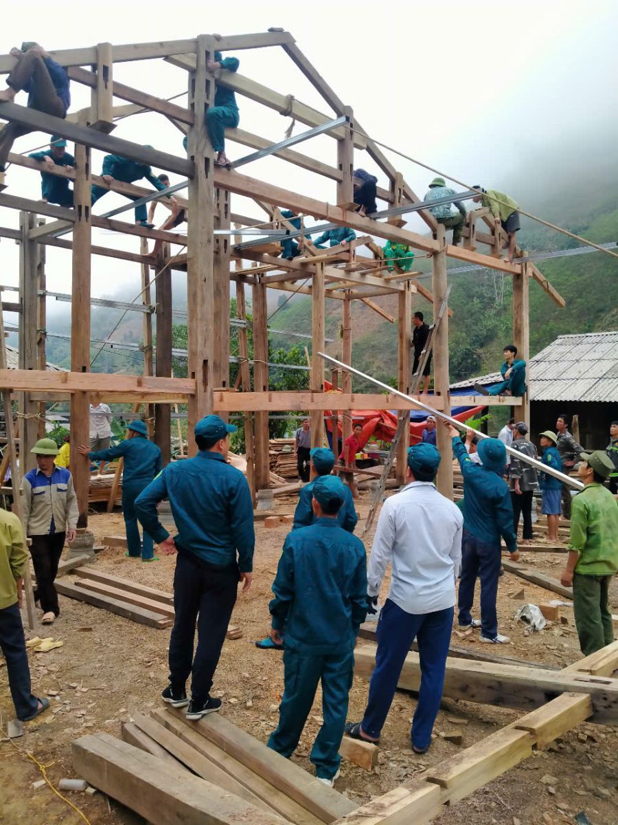Lực lượng dân quân tự vệ hỗ trợ người dân dựng nhà
