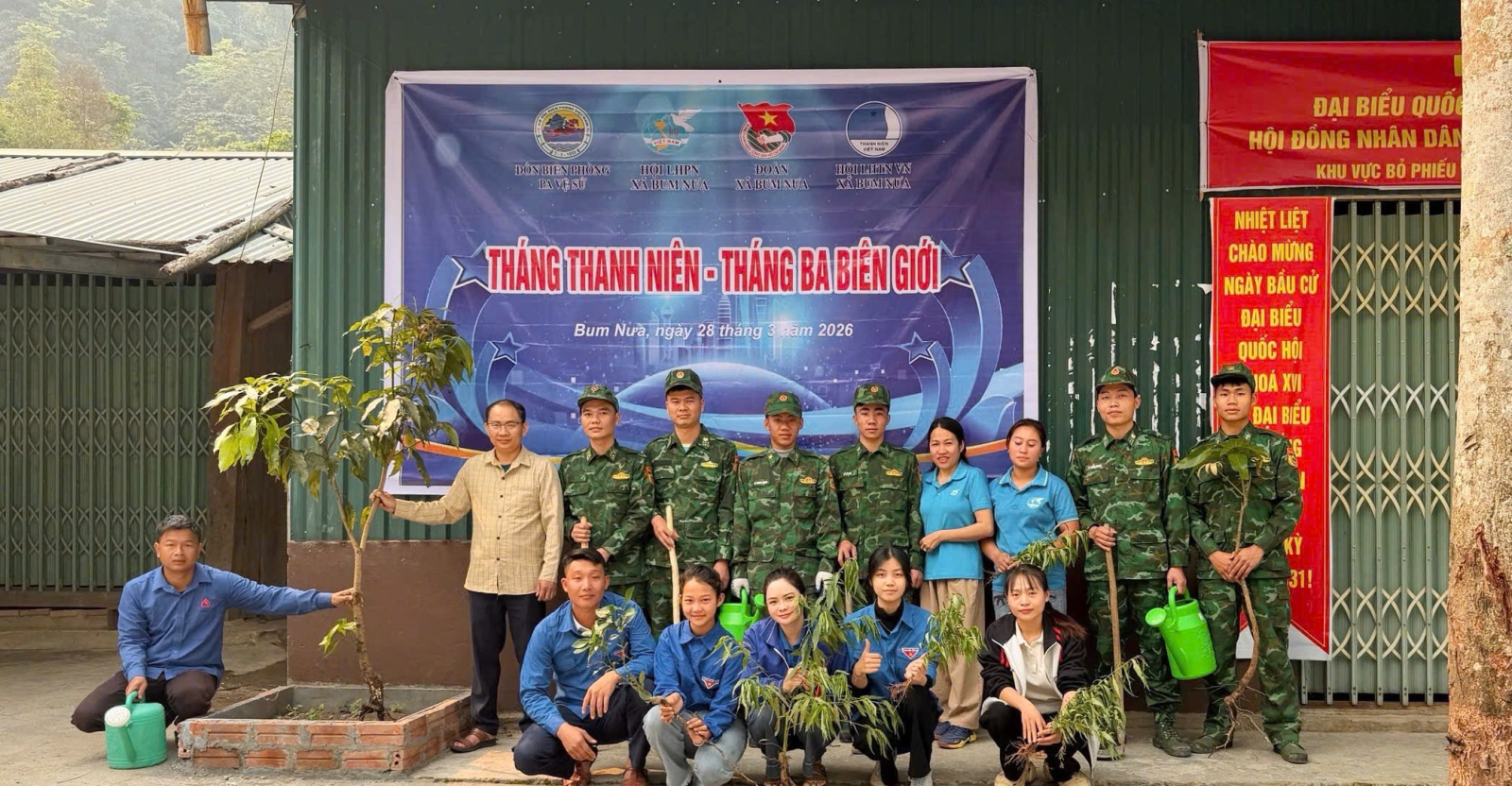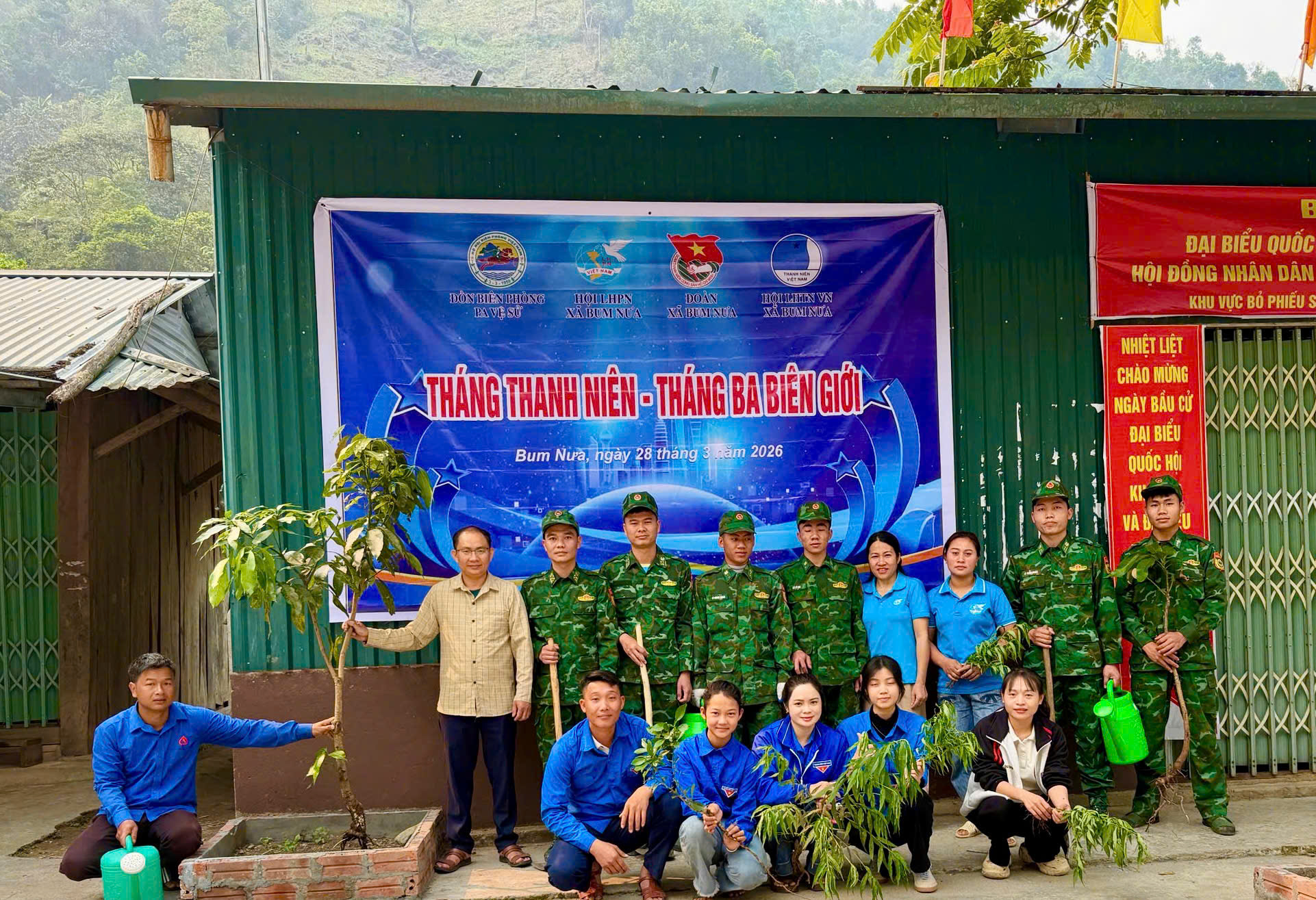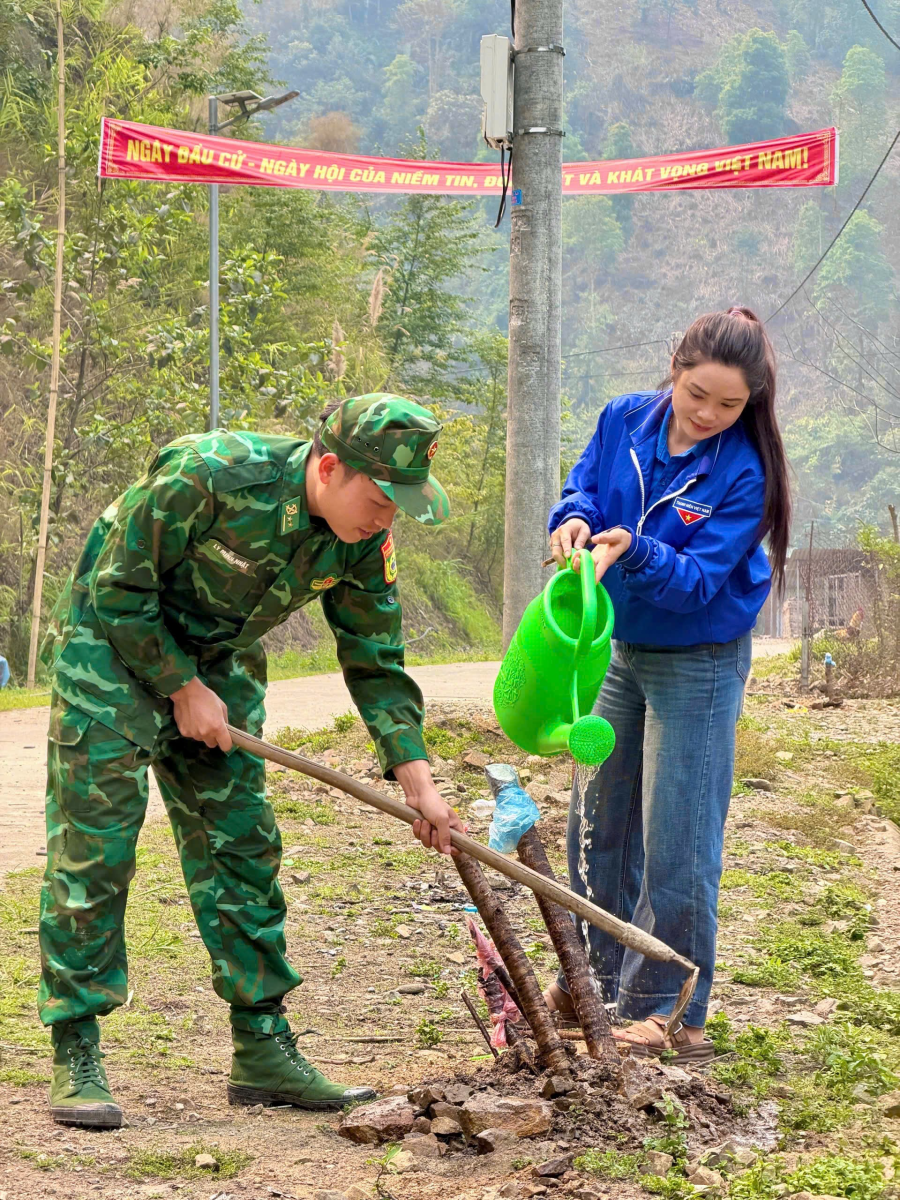 Hưởng ứng Tháng Thanh niên và chương trình “Tháng Ba Biên giới – Tôi yêu Tổ quốc tôi”, Đoàn Thanh niên xã đã phối hợp cùng Đồn Biên phòng Pa Vệ Sử và Hội Liên hiệp Phụ nữ tổ chức hoạt động trồng cây, thực hiện công trình “Hàng cây xanh” tại bản Thò Ma.