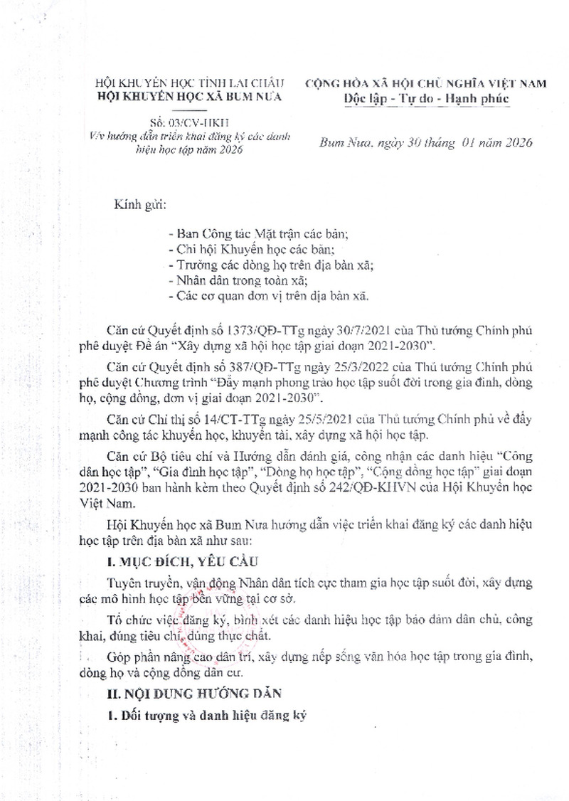 | 6 | CÔNG VĂN | Hướng dẫn đăng ký tài khoản tham gia các khóa học và tự học trên Cổng thông tin Bình dân học vụ số tỉnh Lai Châu | |||||
